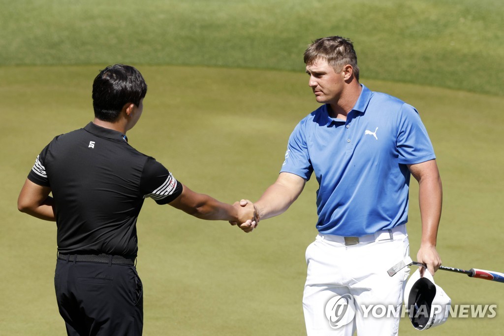 | ▲ 경기 마치고 디섐보와 악수하는 김시우 [게티이미지/AFP=연합뉴스] |