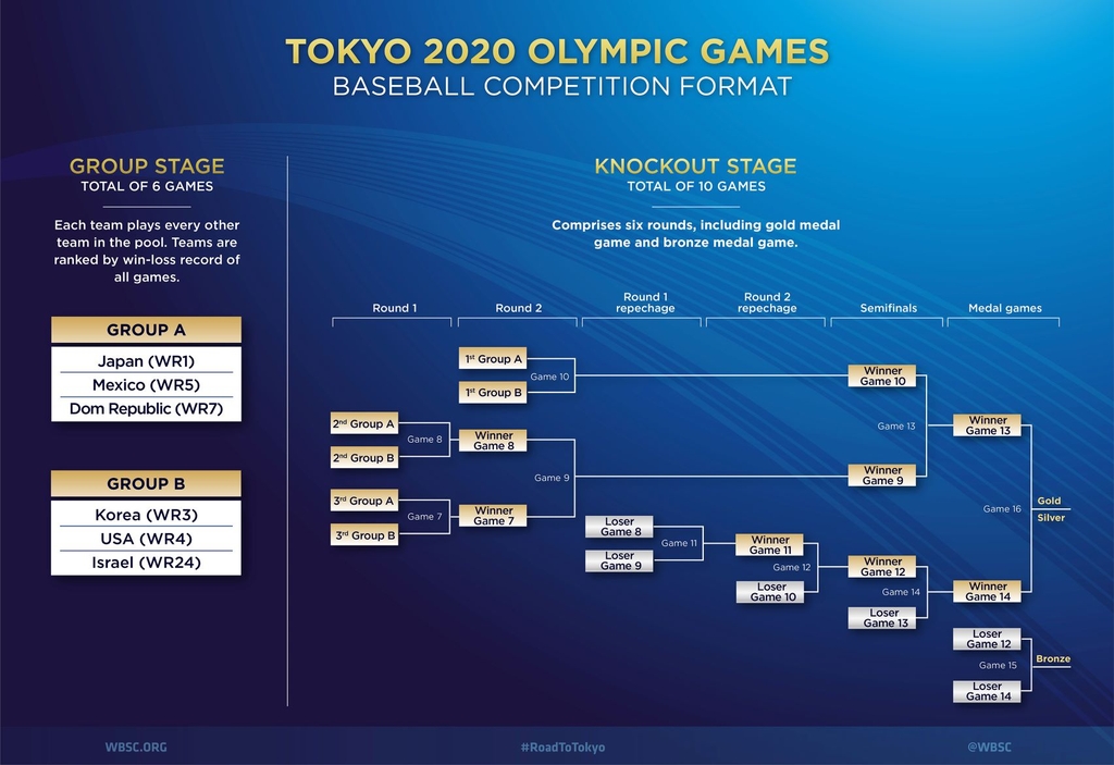 | ▲ This image provided by the World Baseball Softball Confederation on June 29, 2021, shows the knockout bracket for the Tokyo Olympic baseball tournament. (PHOTO NOT FOR SALE) (Yonhap) |