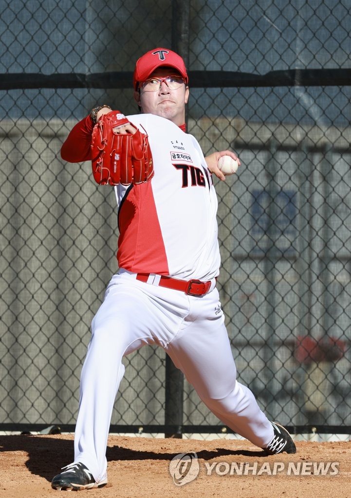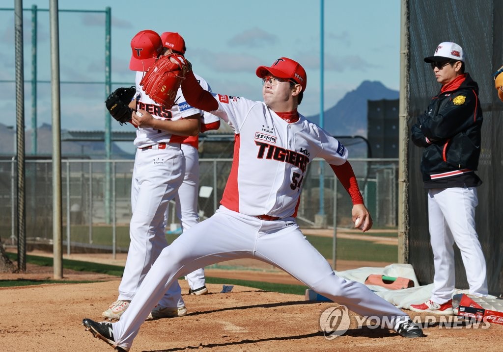 | ▲ Yang Hyeon-jong of the Kia Tigers throws in the bullpen at Kino Sports Complex in Tucson, Arizona, on Feb. 14, 2023, during the club's spring training. (Yonhap) |