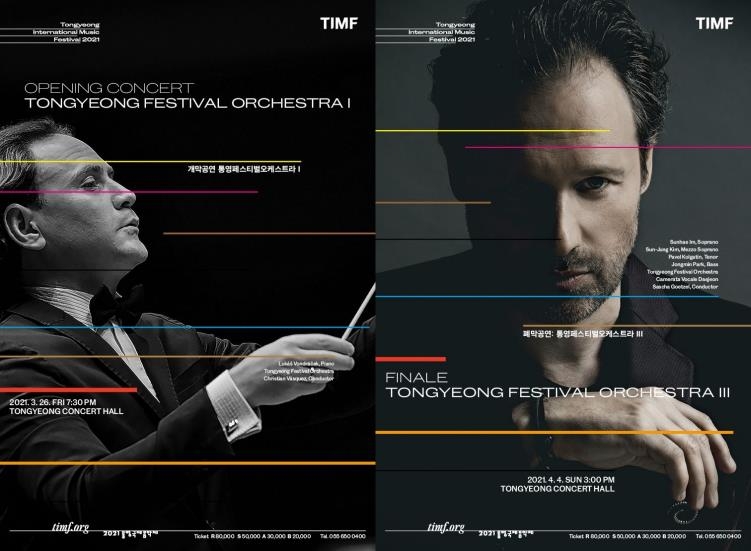 | ▲ 통영국제음악제 개막공연(왼쪽)·폐막공연(오른쪽) 포스터 [통영국제음악재단 제공. 재판매 및 DB 금지] |