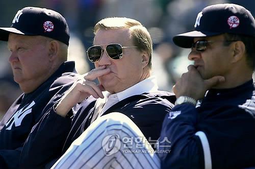 | ▲ 1990년대 뉴욕 양키스의 전성기를 이끈 삼인방. 왼쪽부터 돈 짐머 벤치코치, 조지 스타인브레너 구단주, 조 토리 감독 [EPA=연합뉴스. 재판매 및 DB 금지] |