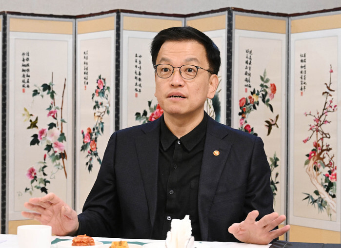 Acting President Choi Sang-mok, who serves concurrently as deputy prime minister for economic affairs and finance minister, attends a meeting on macroeconomic and financial affairs with Financial Supervisory Service chief Lee Bok-hyun, Bank of Korea Deputy Gov. Ryoo Sang-dai and Financial Services Commission head Kim Byoung-hwan at the government complex in Seoul on Feb. 7, 2025, in this photo released by the finance ministry. (PHOTO NOT FOR SALE) (Yonhap)