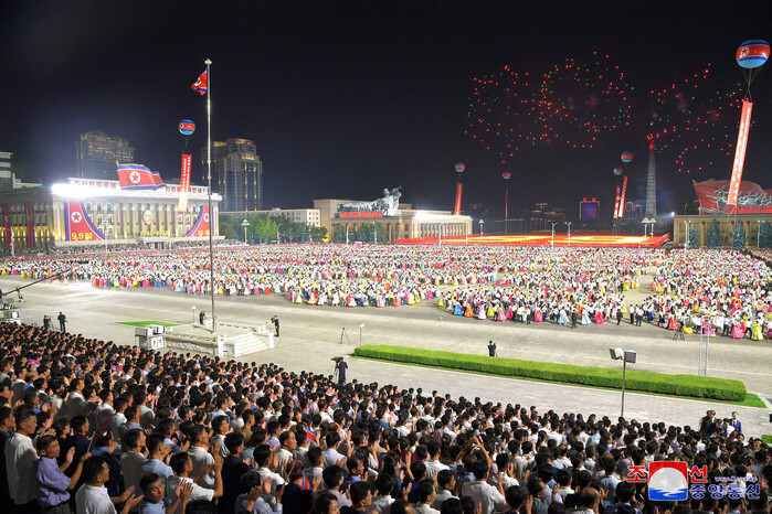 A meeting and an evening gala take place at Kim Il Sung Square in Pyongyang on Sept. 8, 2024, one day ahead of North Korea's 76th birthday, in this photo provided by the North's official Korean Central News Agency. (For Use Only in the Republic of Korea. No Redistribution) (Yonhap)
