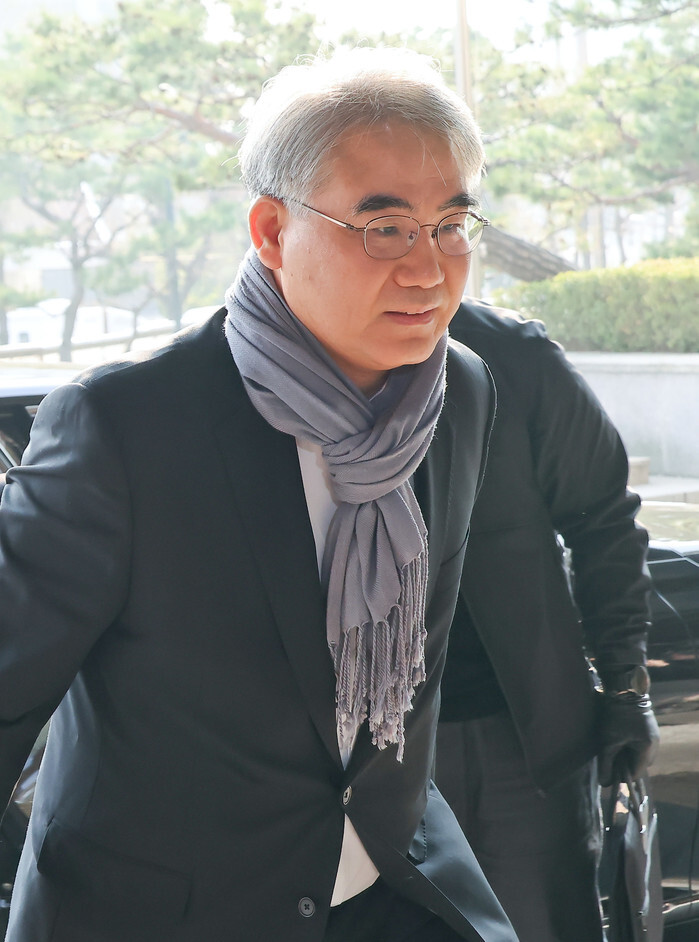 Cho Han-chang, a justice of the Constitutional Court, arrives at the court in Seoul on April 4, 2025, before the court rules on whether to dismiss or reinstate impeached President Yoon Suk Yeol over his short-lived imposition of martial law in December. (Pool photo) (Yonhap)