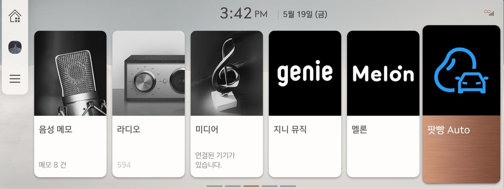 | ▲ 제네시스 내비게이션 홈화면에서 오디오 스트리밍 서비스를 선택할 수 있는 모습 [현대차그룹 제공. 재판매 및 DB금지] |
