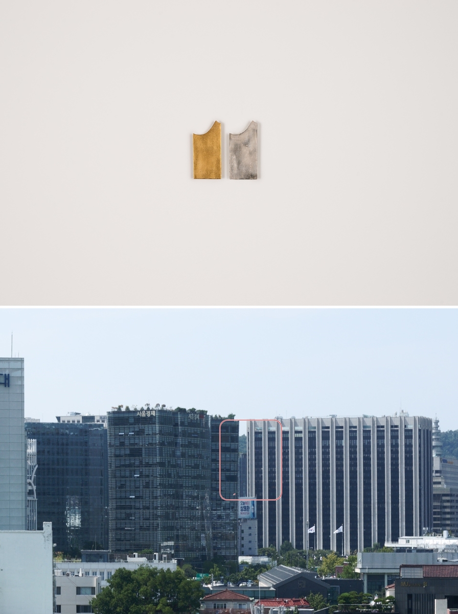 전시장 구석 작은 공간에는 고층 건물 사이로 작게 보이는 인왕산의 모습을 형상화한 '금의 인왕산'과 '은의 인왕산'이 놓였다. 각각 23돈(약 86g)의 순금과 순은을 가공해 얇게 작업한 것으로, 가장 순수하고 값진 재료로 아름다움을 구현했다. 가로 4cm, 세로 9.5cm의 작은 크기지만 물질감에서 오는 존재감이 대단하다.