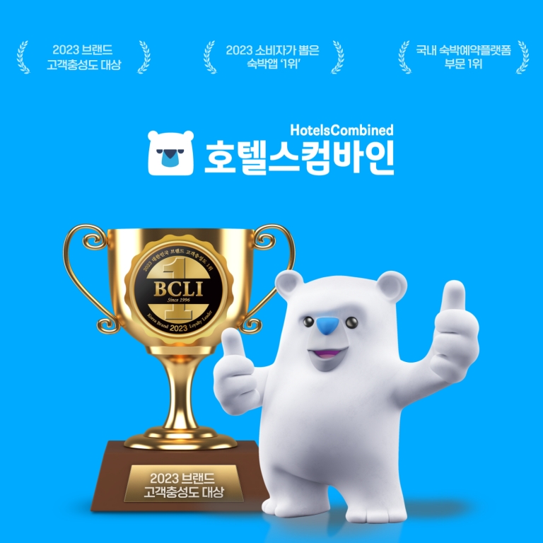 ▲ 글로벌 호텔 검색 플랫폼 호텔스컴바인은 한국소비자포럼과 글로벌 조사기관 브랜드키가 공동 주최한 '2023 브랜드 고객충성도 소비자 대상'에서 숙박예약플랫폼 부문 1위로 선정됐다고 2일 밝혔다. 브랜드 고객충성도 소비자 대상은 고객충성도 측정지표 'BCLI'를 기반으로 13개 부문 1천800여개 브랜드에 대한 소비자 조사·심의를 진행한다. (서울=연합뉴스)