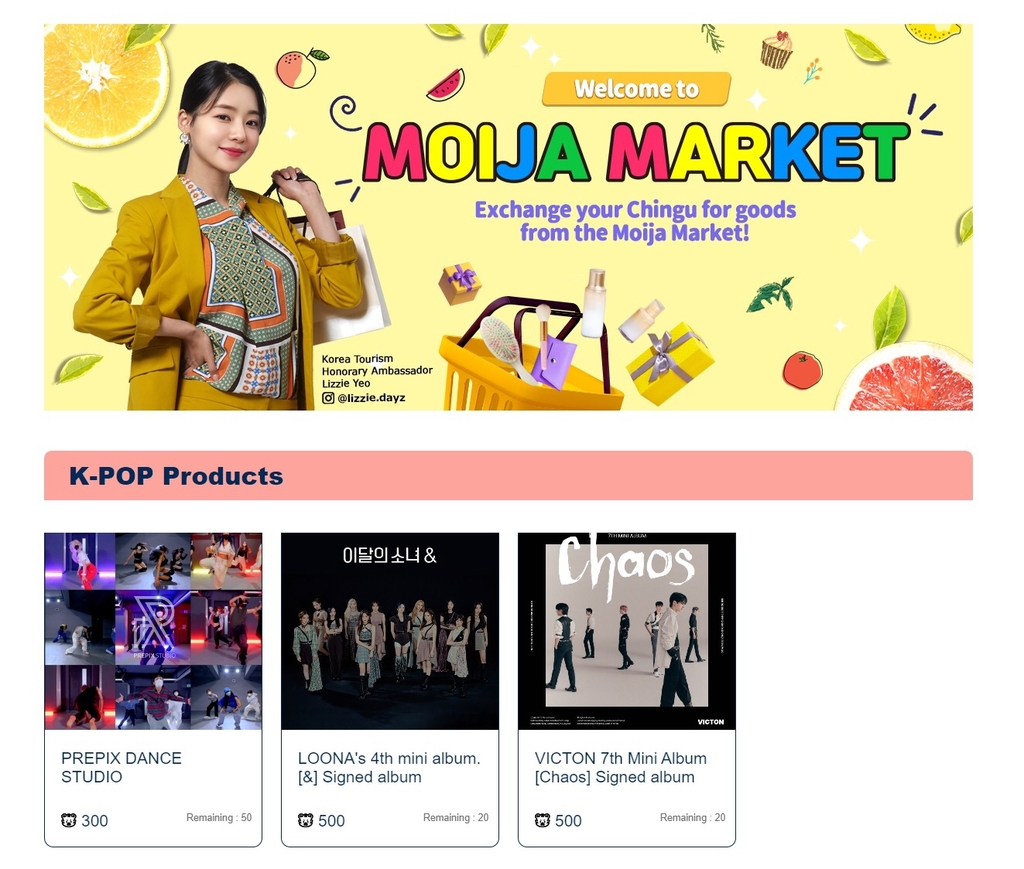 (서울=연합뉴스) 차민지 기자 = 한국관광공사가 글로벌 한류 커뮤니티 'K-프렌즈' 출범 2주년을 맞아 18일부터 회원 대상 신규 서비스 '모이자마켓'을 운영한다.