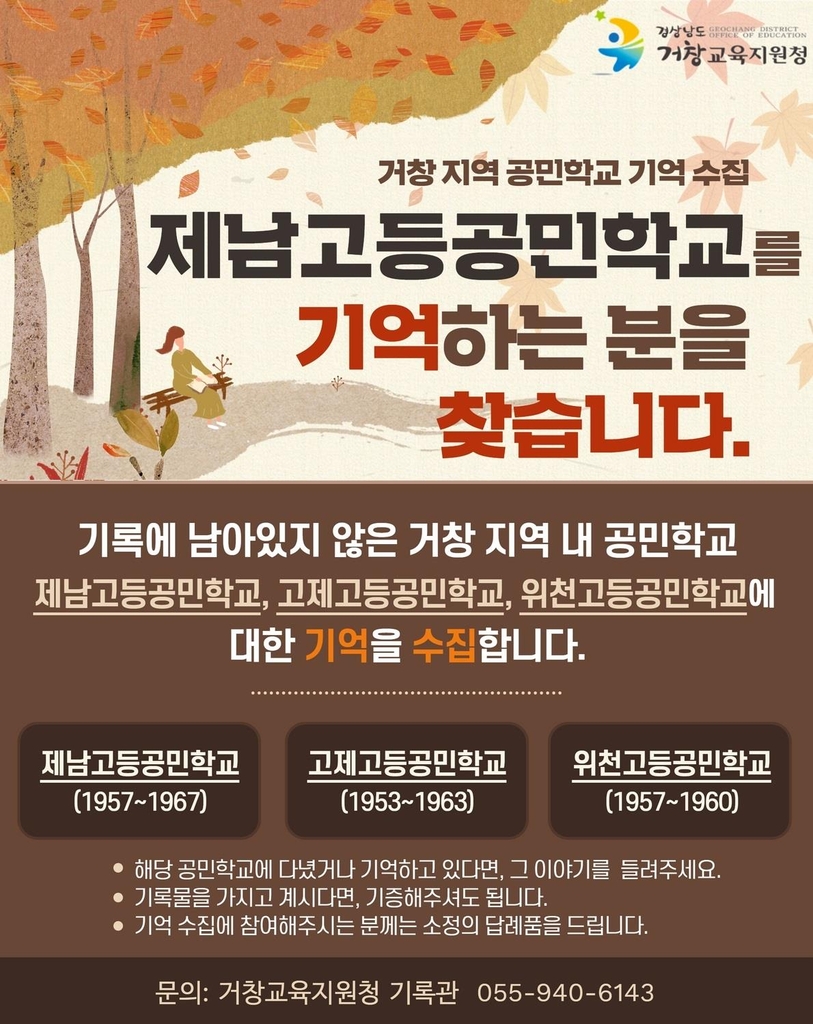 | ▲ 거창 고등공민학교 기억 수집 포스터 [거창교육지원청 제공. 재판매 및 DB 금지] |