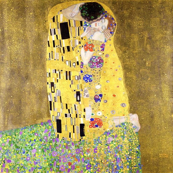 클림트 대표작으로 두 남녀가 황금빛 옷과 장식에 둘러싸여 입맞춤하는 '키스'는 그의 가장 유명한 작품이다.