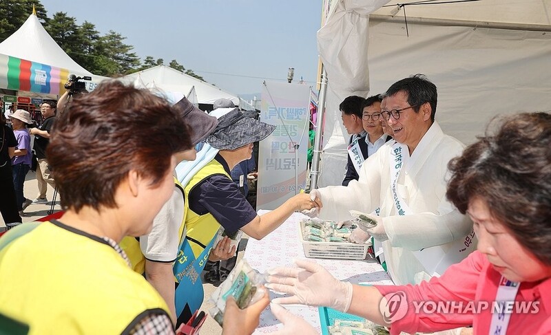 | ▲ 단오맞이 수리떡 나눔 행사하는 김홍규 강릉시장 [연합뉴스 자료사진] |