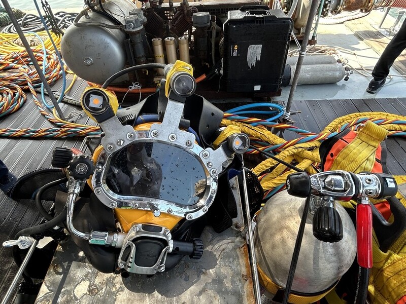 곳곳에는 수중 조사를 위한 장비가 놓여 있었다. 잠수용 헬멧에 공기통, 무게추까지 더하면 물 안에 들어가기 위해 착용해야 하는 장비 무게만 30㎏에 달한다.
