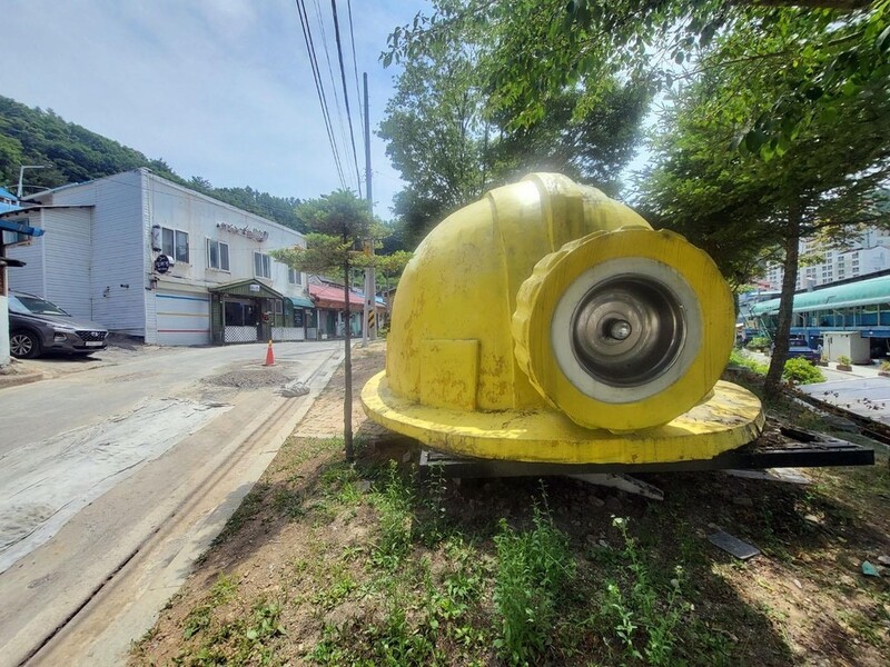▲ 장성중앙시장 인근에 들어선 광부 모자 조형물 [촬영 이상학] |