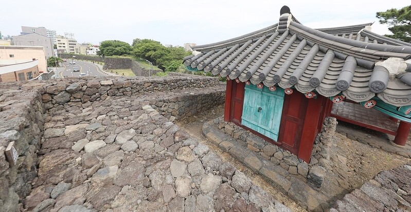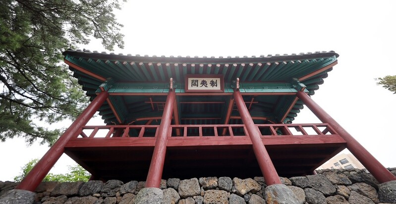 | ▲ 제주 옛도심에 위치한 '제이각' (제주=연합뉴스) 변지철 기자 = '왜적을 제압하기 위한 누각'이란 뜻의 제이각(制夷閣). 사진은 지난 5일 촬영. 2024.6.23 |