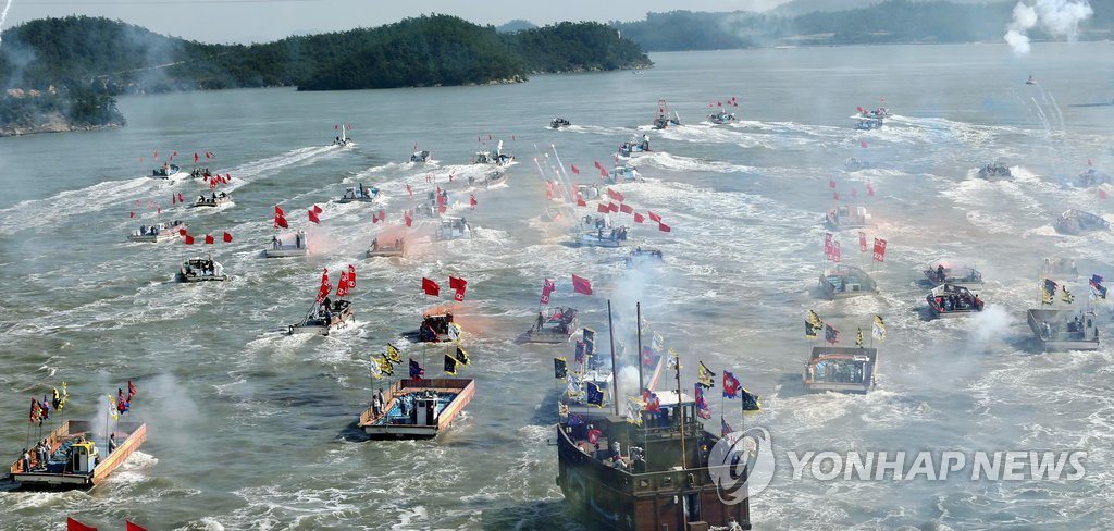 | ▲ 되살아난 명량해전 (해남=연합뉴스) 지난 2013년 9월 29일 열린 '2013 명량축제'에서 명량대첩이 재연되고 있다. 2013.9.29 [연합뉴스 자료사진] |