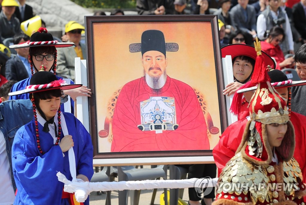 | ▲ 충무공 이순신 영정 봉안 (서울=연합뉴스) 지난 2017년 4월 28일 서울 중구 남산골한옥마을에서 열린 '충무공 탄신 472주년 기념 다례'에서 충무공 영정이 봉안되고 있다. [연합뉴스 자료사진] |