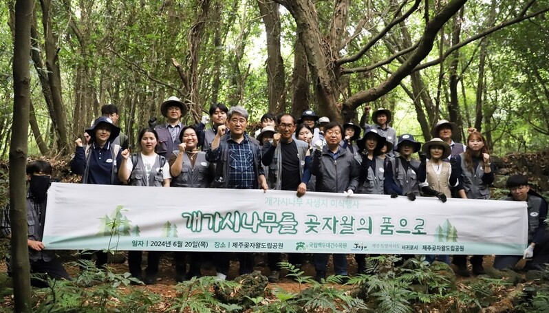 '개가시나무를 곶자왈의 품으로'란 주제로 열린 이 행사에서 참석자들은 개가시나무 60개체를 제주곶자왈도립공원 자생지에 이식했으며, 생육 상황을 모니터링하기 위한 장비도 설치했다.