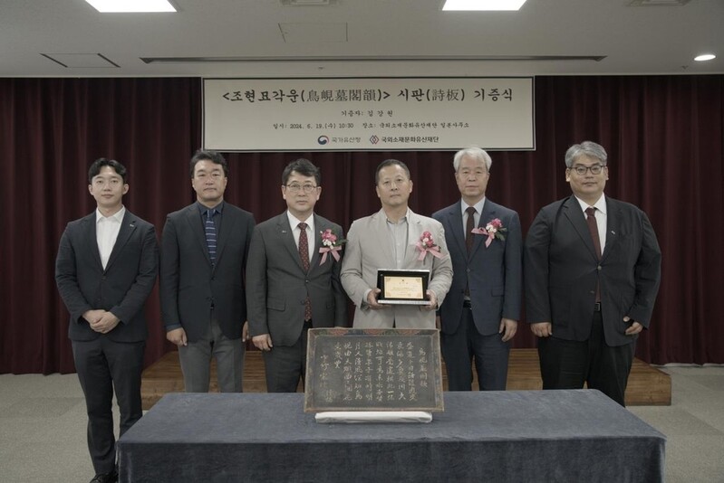 국가유산청과 국외소재문화유산재단은 19일 일본에서 고미술 거래업체 '청고당'을 운영하는 김강원 씨로부터 '조현묘각운'(鳥峴墓閣韻) 시판을 기증받았다고 밝혔다.