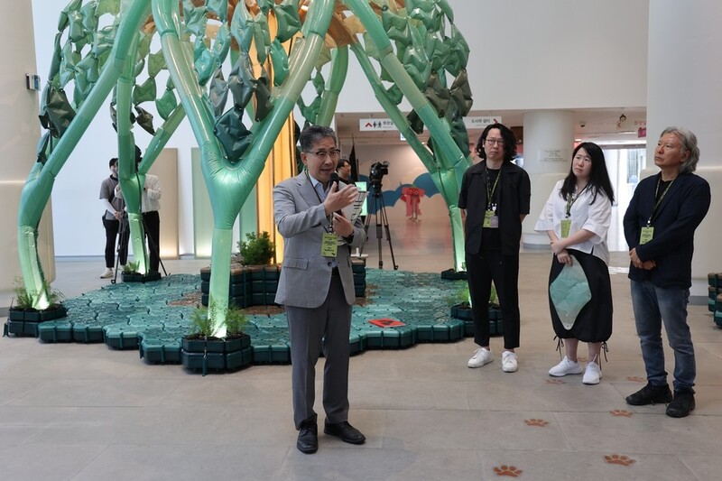 에어 폴리는 바다 쓰레기 미역 줄기로 제작한 가변·이동형 구조물로 다음 달 14일까지 국립 아시아문화전당 어린이문화원 로비에 전시된다.
