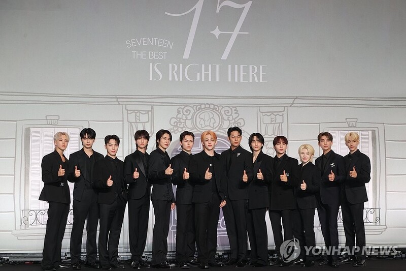 | ▲ 세븐틴, 베스트 앨범 '17 IS RIGHT HERE' 발매 (서울=연합뉴스) 류효림 기자 =그룹 세븐틴이 4월 29일 서울 여의도 콘래드호텔에서 열린 베스트 앨범 '17 IS RIGHT HERE' (세븐틴 이즈 라이트 히어) 발매기념 기자간담회에서 포즈를 취하고 있다. 2024.4.29 ryousanta@yna.co.kr |
