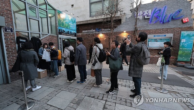| ▲ 역사 속으로 사라지는 학전 (서울=연합뉴스) 김인철 기자 = 14일 오후 서울 종로구 대학로 소극장 학전블루 앞에서 시민들이 폐관을 하루 앞두고 열리는 '학전, 어게인 콘서트' 마지막 공연을 보기 위해 입장하고 있다. 2024.3.14 yatoya@yna.co.kr |