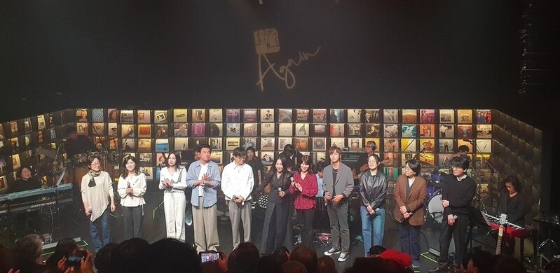| ▲ 서울 대학로 학전 최후의 공연 '학전 어게인 콘서트' 마지막 회차 (서울=연합뉴스) 이태수 기자 = 14일 오후 서울 대학로 소극장 학전에서 열린 '학전 어게인 콘서트' 마지막 회차에서 가수 한영애, 권진원, 박학기, 노래를찾는사람들, 알리, 정동하와 배우 황정민 등 전 출연진이 소감을 밝히고 있다. 2024.3.14 tsl@yna.co.kr |