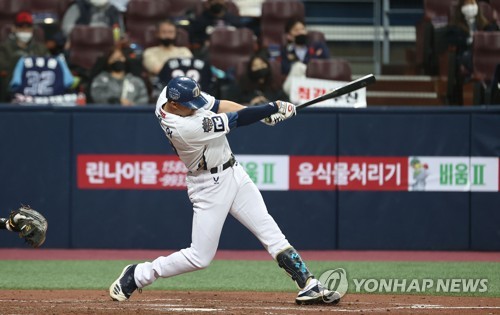 | ▲ '3점이요' (서울=연합뉴스) 한종찬 기자 = 17일 오후 서울 구로구 고척스카이돔에서 열린 2020 프로야구 포스트시즌 한국시리즈 1차전 두산 베어스와 NC 다이노스의 경기. 4회말 1사 1,2루에서 NC 알테어가 3점 홈런을 치고 있다. 2020.11.17 saba@yna.co.kr |