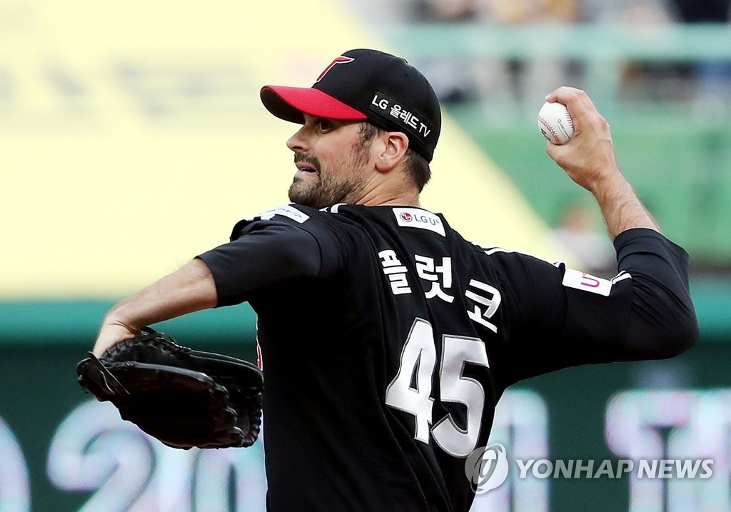 | ▲  In this file photo from May 20, 2022, Adam Plutko of the LG Twins pitches against the SSG Landers during the bottom of the first inning of a Korea Baseball Organization regular season game at Incheon SSG Landers Field in Incheon, some 30 kilometers west of Seoul. (Yonhap) |
