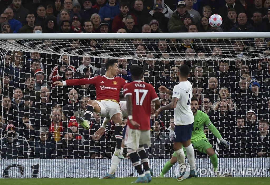 (서울=연합뉴스) 안홍석 기자 = 잉글랜드 프로축구 맨체스터 유나이티드(맨유)가 크리스티아누 호날두의 해트트릭을 앞세워 손흥민이 풀타임을 소화한 토트넘 홋스퍼를 꺾고 4위로 올라섰다.