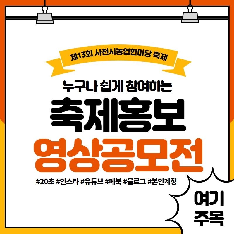 공모전 이벤트는 다른 공모전과 달리 사천시농업한마당축제를 응원하거나 사천시 농산물을 홍보하는 내용의 20초 내외의 짧은 영상을 SNS에서 올리는 것만으로 참여할 수 있다.