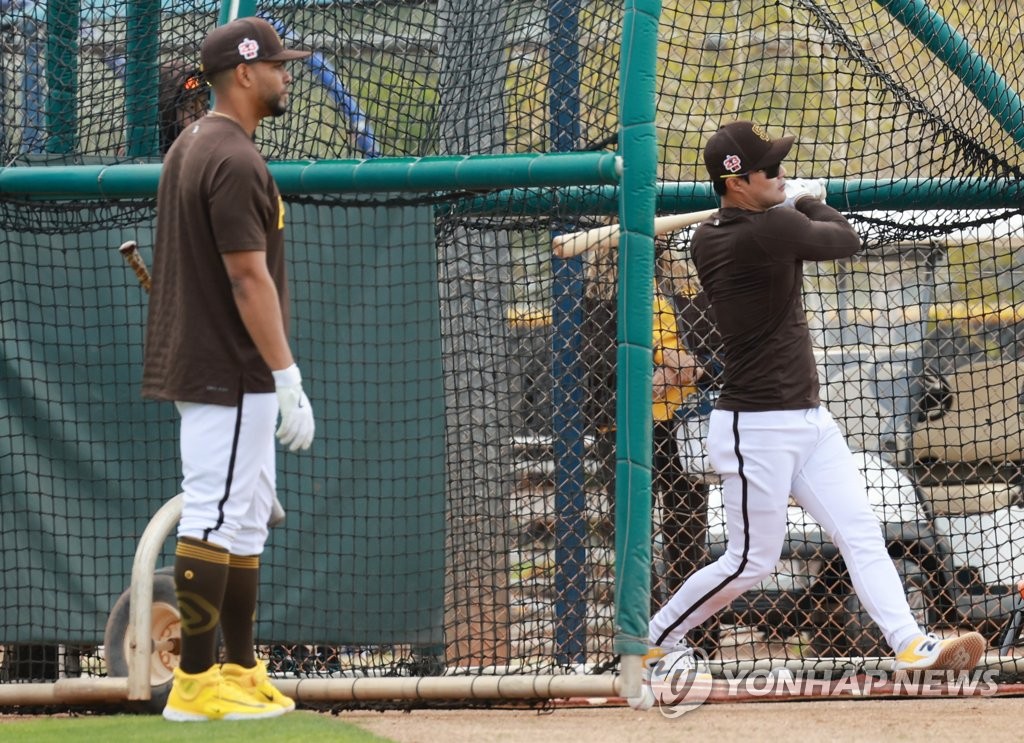 (피오리아[미국 애리조나주]=연합뉴스) 장현구 기자 = 미국프로야구 메이저리그(MLB) 샌디에이고 파드리스의 투수와 야수 전체 훈련 이틀째인 22일(한국시간)에도 김하성(28)은 '거물'들과 함께 호흡하며 땀을 흘렸다.