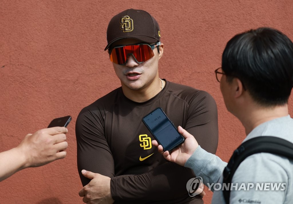 | ▲ 김하성, 한국 취재진과 인터뷰 (피오리아[미국 애리조나주]=연합뉴스) 홍해인 기자 = 21일(현지시간) 미국 애리조나주 피오리아 스포츠 콤플렉스에서 열린 미국 메이저리그(MLB) 샌디에이고 파드리스의 스프링 캠프 훈련. 김하성이 훈련 종료 뒤 한국 취재진과 인터뷰를 하고 있다. 2023.2.22 hihong@yna.co.kr |