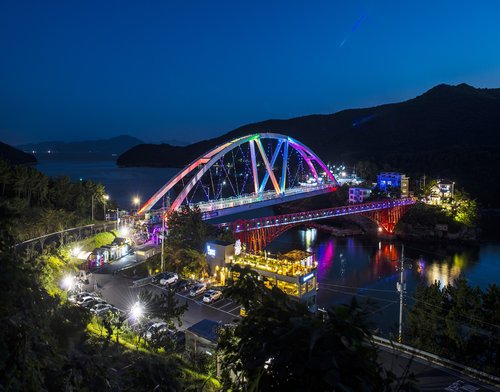발아래로는 푸른 바다가 펼쳐지고, 밤이면 형형색색 경관 조명으로 낭만적 분위기를 자아낸다.