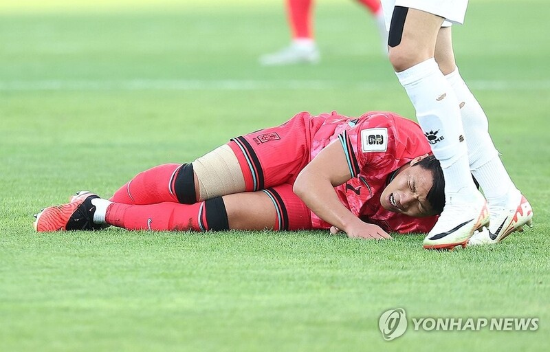 | ▲ 부상 당한 황희찬 (암만[요르단]=연합뉴스) 류영석 기자 = 10일(현지시간) 요르단 암만국제경기장에서 열린 2026 피파 북중미월드컵 아시아 3차 예선 3차전 한국과 요르단의 경기. 황희찬이 고통을 호소하고 있다. 2024.10.11 ondol@yna.co.kr |