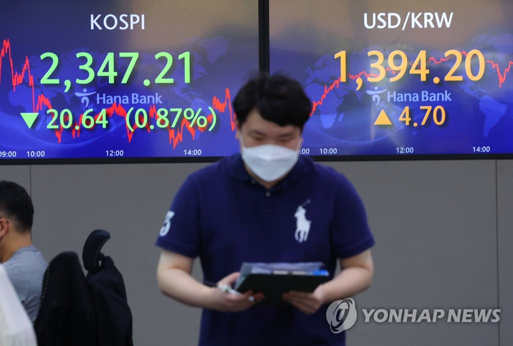| ▲ This photo, taken Sept. 21, 2022, shows stock and currency movements depicted on an electronic signboard at a Hana Bank dealing room in Seoul. (Yonhap) |