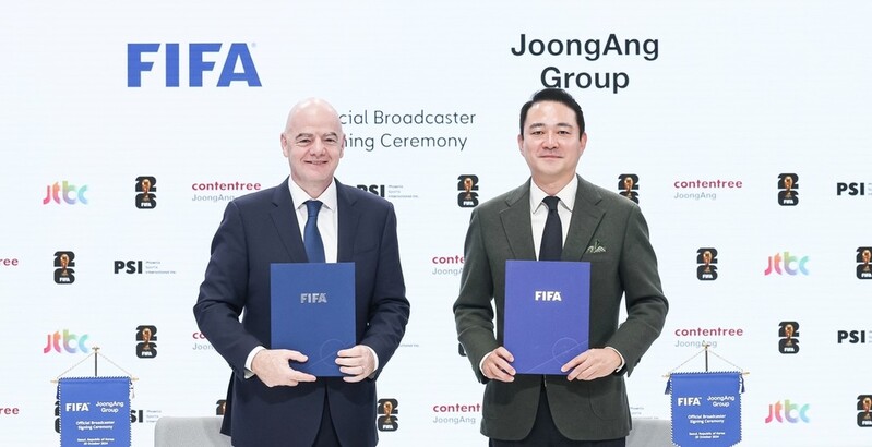 JTBC는 지난 29일 서울 마포구 상암동 JTBC 건물에서 홍정도 중앙그룹 부회장과 잔니 인판티노 국제축구연맹(FIFA) 회장이 참석한 가운데 조인식을 진행했다고 30일 밝혔다.