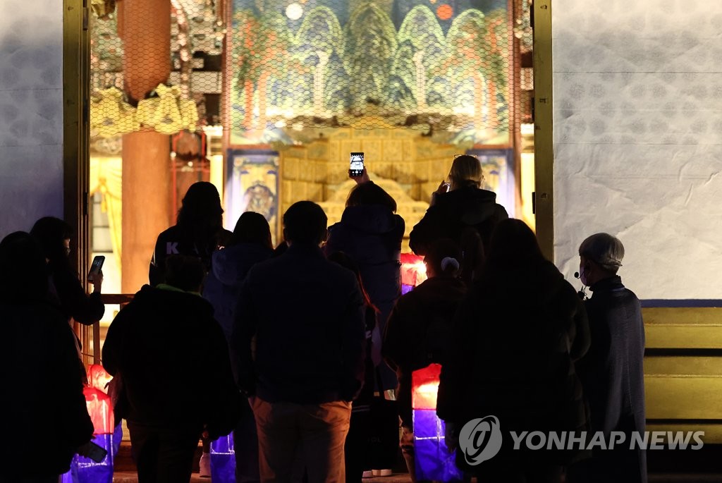 | ▲ 청사초롱 들고 만나는 밤의 궁궐…'창덕궁 달빛기행' 13일 시작 (서울=연합뉴스) 윤동진 기자 = 12일 서울 창덕궁에서 열린 '창덕궁 달빛기행' 특별행사에서 시민들이 경내를 둘러보고 있다. 문화재청 궁능유적본부와 한국문화재재단은 이달 13일부터 6월 4일까지 매주 목∼일요일에 '창덕궁 달빛기행' 프로그램을 운영한다고 5일 밝혔다. 2023.4.12 mon@yna.co.kr |
