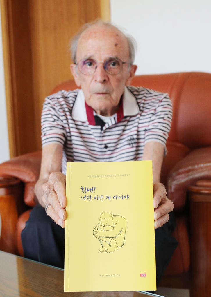 ▲ (구미 미래로병원에서 상담 활동을 하는 이춘자 수녀가 기획해 펴낸 단행본 '힘내! 너만 아픈 게 아니야'를 소개하며) 그런 사람들에게 권할 책이다. 어려움을 극복한 여러 사람의 이야기를 들려주면 실망하고 자살하려고 하는 사람들에게 도움이 되지 않겠는가 해서 만든 책이다. 과거 6·25 때는 아주 형편없는 나라였는데 그래도 극복했다. 어려움이 있다고 포기하고 자살하면 안 된다.