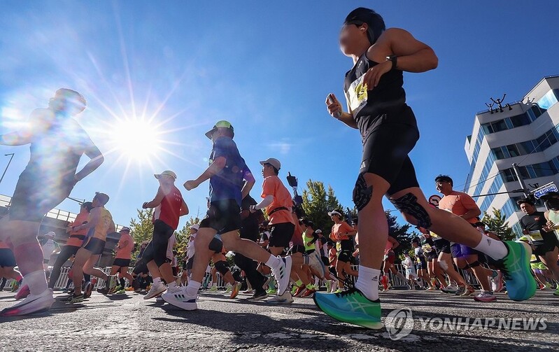 | ▲ 힘차게 달리는 국제평화마라톤 참가자들 (서울=연합뉴스) 서대연 기자 = 3일 오전 서울 강남구 봉은사로에서 열린 제21회 국제평화마라톤 대회에서 참가자들이 달리고 있다. 2024.10.3 dwise@yna.co.kr |