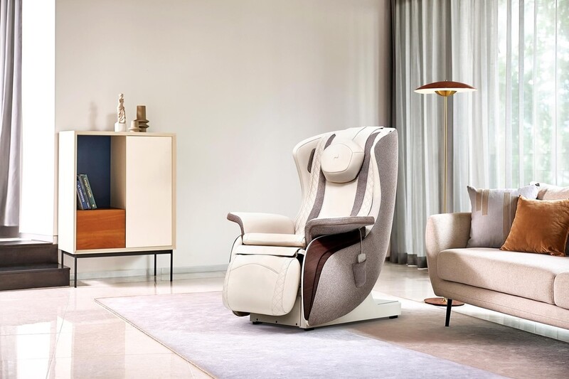 ▲ 바디프랜드는 어느 공간에나 조화롭게 어울리는 인테리어 마사지 소파 '파밀레M'을 출시했다. 기존 안마의자 대비 작은 크기지만 목부터 종아리까지 전신 마사지가 가능하다.