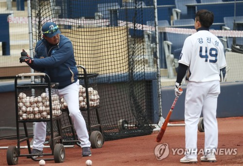 | ▲ 이호준 코치에게 타격 지도받는 강진성 [연합뉴스 자료사진] |