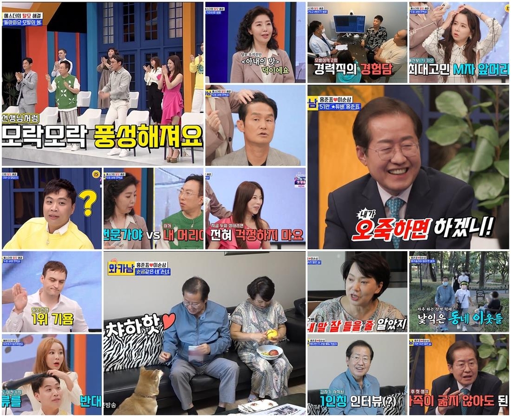 기존 예능 중 TV조선 '와카남'은 국민의힘 대권주자인 홍준표 의원의 등장에 시청률 5.6%를 찍었다. 시원한 직설화법으로 '무야홍', '홍카콜라'라고 불리는 홍 의원은 방송에서도 '사이다' 발언을 뽐내며 예능감을 자랑했다. 밖에서는 강성이지만 가정에서는 로맨티스트인 면모도 강조했다.