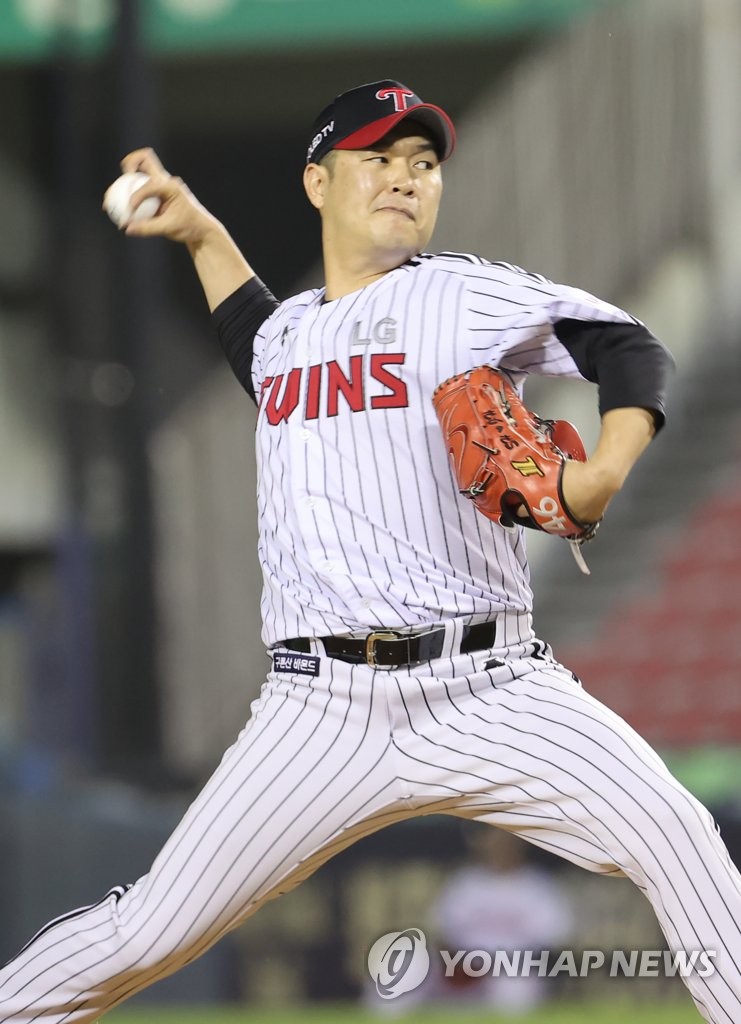 | ▲ In this file photo from June 11, 2021, Song Eun-beom of the LG Twins pitches against the Doosan Bears during a Korea Baseball Organization regular season game at Jamsil Baseball Stadium in Seoul. (Yonhap) |