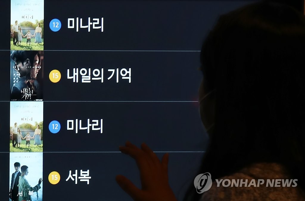 | ▲ 아카데미가 주목한 배우 윤여정의 영화 '미나리' (서울=연합뉴스) 진연수 기자 = 영화 '미나리'가 배우 윤여정의 아카데미 여우조연상 수상에 힘입어 박스오피스 톱5에 다시 진입했다. 27일 영화진흥위원회 영화관입장권 통합전산망에 따르면 전날 '미나리'는 5천여 명을 동원해 전체 박스오피스 4위를 차지했다. 누적 관객은 94만 4천여 명이다. 사진은 이날 시내 한 영화관에서 영화를 예매하는 시민. 2021.4.27 jin90@yna.co.kr |