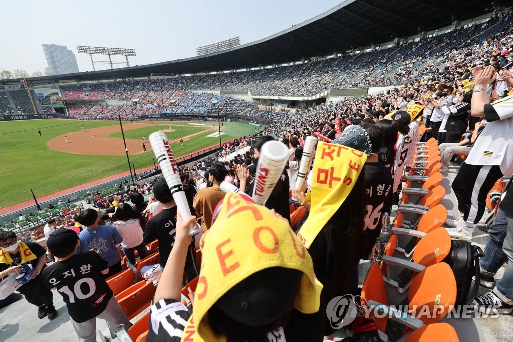 SEOUL, April 25 (Yonhap) -- Attendance in the South Korean baseball league spiked over the weekend, with vocal cheering permitted for the first time during the COVID-19 pandemic.