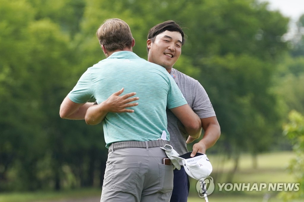 | ▲ 우승을 확정한 뒤 동반 플레이를 한 번스와 포옹하는 이경훈(오른쪽). [로이터=연합뉴스] Mandatory Credit: Jim Cowsert-USA TODAY Sports |