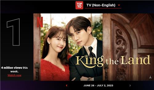 SEOUL, July 5 (Yonhap) -- The Korean romantic drama series "King the Land" was Netflix's most-watched non-English TV show in the previous week, the streaming platform's viewership chart showed Wednesday.