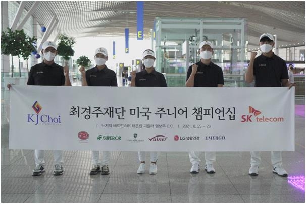 | ▲ 미국으로 출국할 때 인천국제공항에서 포즈를 취한 최경주 재단 골프 꿈나무들. [최경주 재단 제공. 재판매 및 DB 금지] |