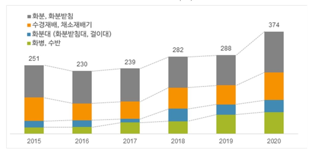 화분류는 전년보다 36%가량 증가했다. 식물의 건강 상태를 알려주고 생육환경을 조절하는 스마트화분 출원이 늘었다.