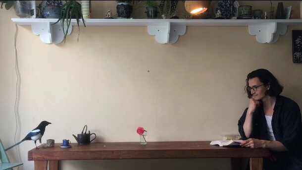 | ▲ '까치 한 마리는 기쁨'의 저자 찰리 길모어와 까치 '벤젠' [찰리 길모어 트위터 캡처. 재판매 및 DB 금지] |